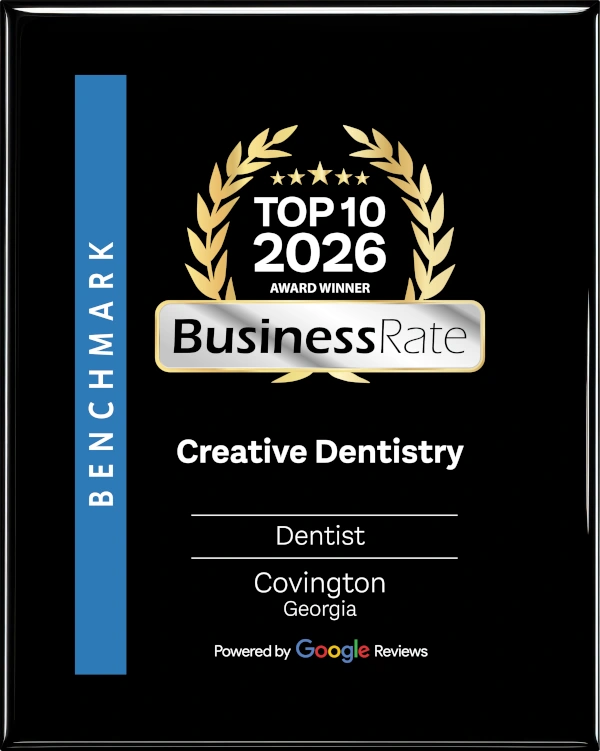Creative Dentistry received a Top 10 2026 Award Winner recognition from BusinessRate in the Dentist category for Covington, Georgia.